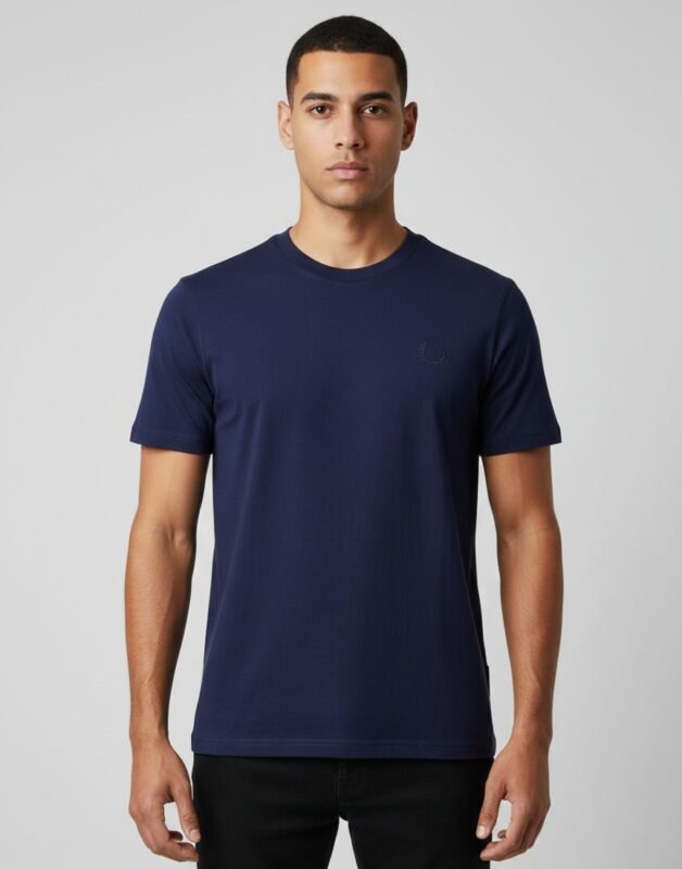 Men’s Classic Navy Blue Crewneck T-Shirt with Embroidered Logo
