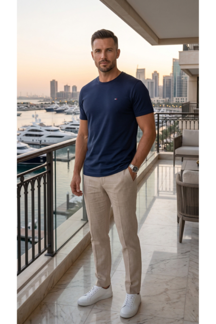 Men’s Classic Navy Blue Crewneck T-Shirt with Embroidered Logo