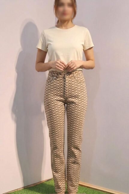 Women’s High-Waisted Wavy Print Denim Pants